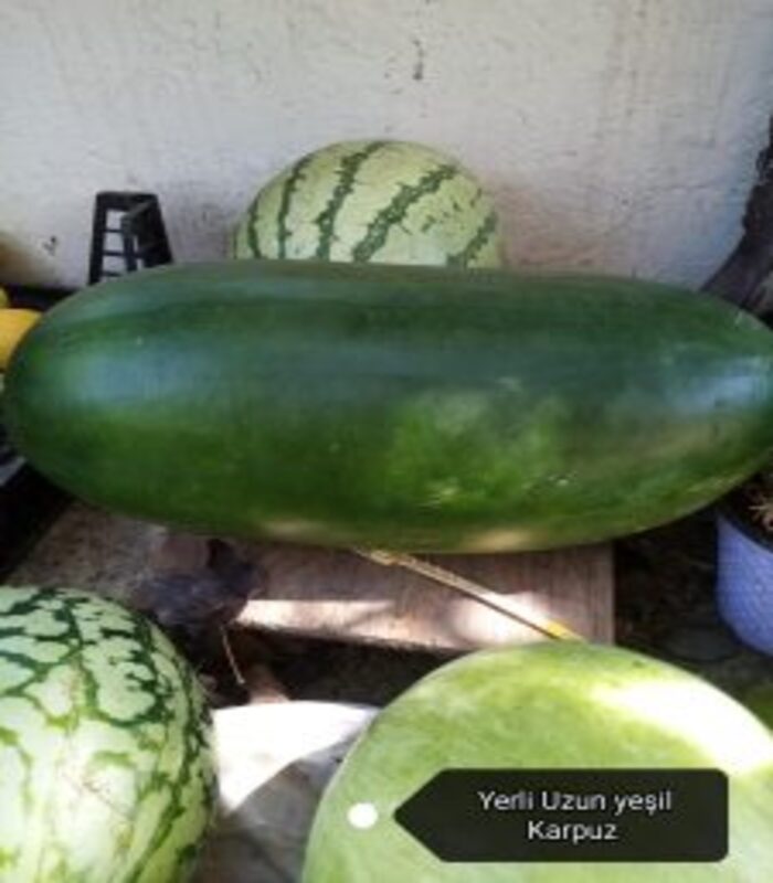 Uzun çok iri yeşil köy karpuzu tatlı ve geleneksel bir çeşittir.